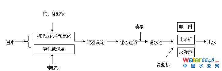 3)深度處理工藝(適合于原水水質(zhì)為劣Ⅲ類或以下的地表水)
