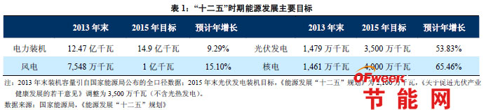 根據(jù)能源發(fā)展“十二五”規(guī)劃,到2015年我國電力裝機容量將達到14.9億千瓦,其中,風(fēng)電、太陽能和核電的裝機容量分別達到10,000萬千瓦、3500萬千瓦和4000萬千瓦。