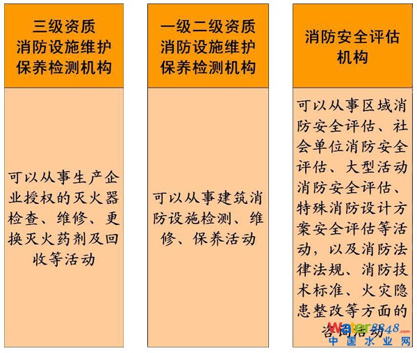 消防設(shè)施維護(hù)保養(yǎng)檢測機(jī)構(gòu)中的一、二級資質(zhì)與三級資質(zhì)的關(guān)系。 歡迎關(guān)注微信“給水排水”