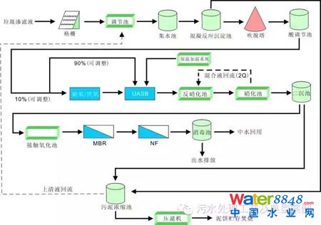 南京瑞潔特膜科技周保昌:有公司采用MVC+DI技術(shù)應(yīng)用于垃圾滲濾液處理。技術(shù)路線如下: