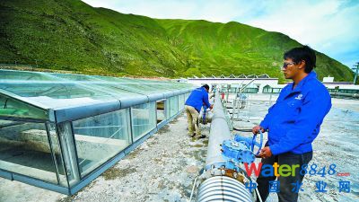 北京援建的玉樹州結(jié)古鎮(zhèn)污水處理廠,工人正在檢查污泥培養(yǎng)情況,為即將開始的正式運(yùn)營(yíng)做好準(zhǔn)備。這是全國(guó)海拔最高的污水處理廠,也是三江源地區(qū)第一座污水處理廠。圖片來(lái)源北京日?qǐng)?bào)