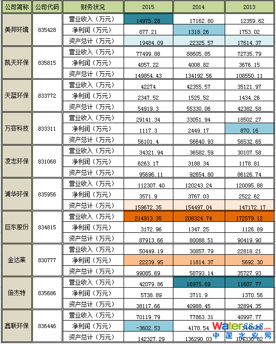 表2 新三板環(huán)保行業(yè)重點掛牌公司年營業(yè)收入及總資產(chǎn)概況