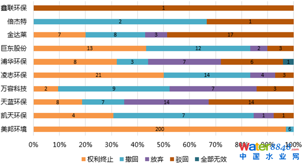 圖5 新三板環(huán)保行業(yè)重點掛牌公司無效專利狀態(tài)分析