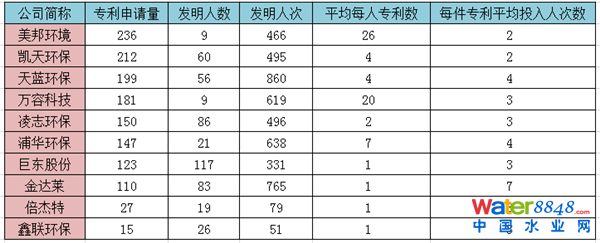 表5 新三板環(huán)保行業(yè)重點掛牌公司發(fā)明人分析