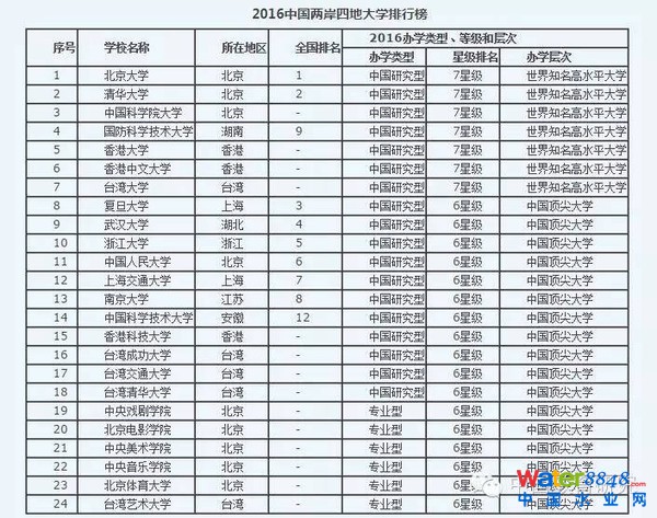 2016中國大學(xué)排行榜700強(qiáng) 北京大學(xué)、清華大學(xué)、中國科學(xué)院大學(xué)、國防科學(xué)技術(shù)大學(xué)、臺灣大學(xué)、香港大學(xué)和香港中文大學(xué)等榮膺2017中國七星級大學(xué)