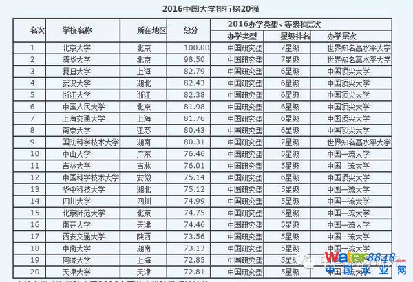 2016中國各類型大學(xué)排行榜前5強(qiáng)