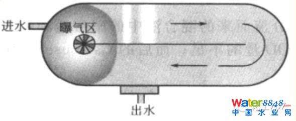 曝氣裝置的轉(zhuǎn)動,推動溝內(nèi)液體迅速流動,具有曝氣和攪拌兩個作用,溝中混合液流速約為0.3~0.6m/s,使活性污泥呈懸浮狀態(tài)。