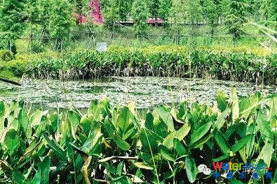 公園里看起來青翠欲滴的花花草草也大有玄機(jī)。公園里,沿著廣場走下去就是沉淀塘,一人多高的蘆葦、海芋隨風(fēng)飄蕩,它們固沙力強(qiáng)、吸污力強(qiáng),能過濾大顆粒懸浮物、細(xì)小沙礫和易沉降的污染物。往下走是狀如長劍的菖蒲、直立挺拔的水芹,它們的作用是凈化病原體;水中的紙莎草、睡蓮不僅為景色增艷,也有吸收水中重金屬、保持水質(zhì)穩(wěn)定的功效。