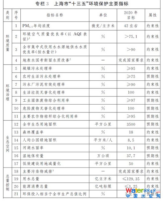 上海市環(huán)境保護和生態(tài)建設(shè)“十三五”規(guī)劃