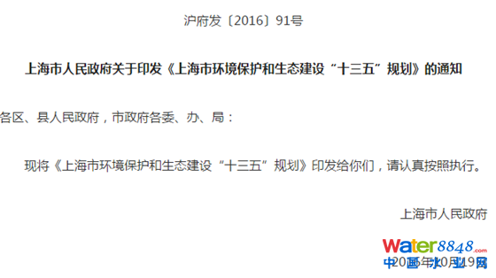上海市政府印發(fā)《上海市環(huán)境保護和生態(tài)建設(shè)“十三五”規(guī)劃》(附全文)