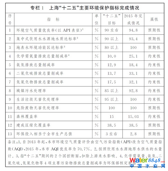 3.指“十二五”期間的2個國控斷面,扣除上游來水影響。4.化學需氧量、氨氮、二氧化硫、氮氧化物等4項主要污染物排放總量削減率為環(huán)保部核定數(shù)據(jù)。