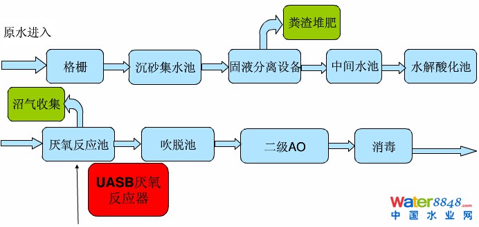1、(牲畜)原水進(jìn)入污水處理站的處理工藝
