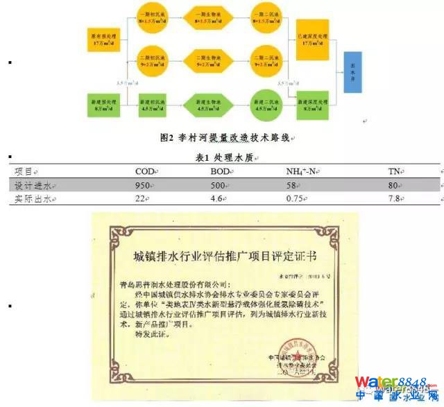 同時對改造和新建工程進行了能耗追蹤,一期和二期噸水電耗從改造前的;降至;三期新建工程噸水電耗為,出水標準提高而能耗降低,主要源于采用微動力混合池型,取消推流器,降低推流器電耗;同時,懸浮填料填充率增加,大幅提高氧利用率,降低曝氣能耗。