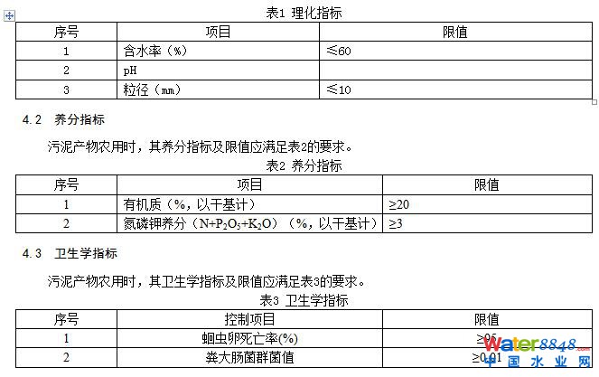 污泥產(chǎn)物農(nóng)用時(shí),其理化指標(biāo)及限值應(yīng)滿足表1的要求。