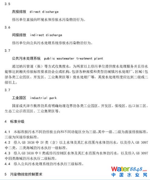 同時,標準調(diào)整了污染物排放限值,按污水不同的排放去向分為3級,一級、二級為直接排放標準,三級為間接排放標準。其中直接排入地表水環(huán)境的排放標準中主要指標的排放限值可以達到相應地表水環(huán)境質(zhì)量標準要求,間接排入公共污水處理系統(tǒng)的污水執(zhí)行三級標準與現(xiàn)行國家《污水排入城鎮(zhèn)下水道水質(zhì)標準》(GB/T 31962-2015)一致,解決了納管標準不一致的問題。