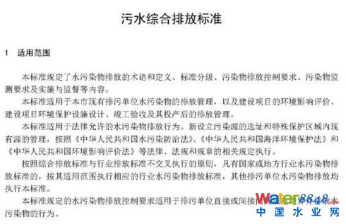 污水綜合排放標準解決國標地標交叉問題