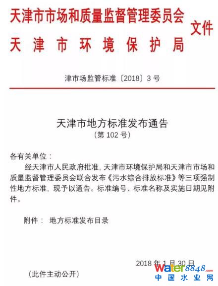 天津市《污水綜合排放標準》已經(jīng)印發(fā),2018年2月1日起施行,旨在加強天津市水污染防治工作,保護和改善水環(huán)境 ,詳情如下: