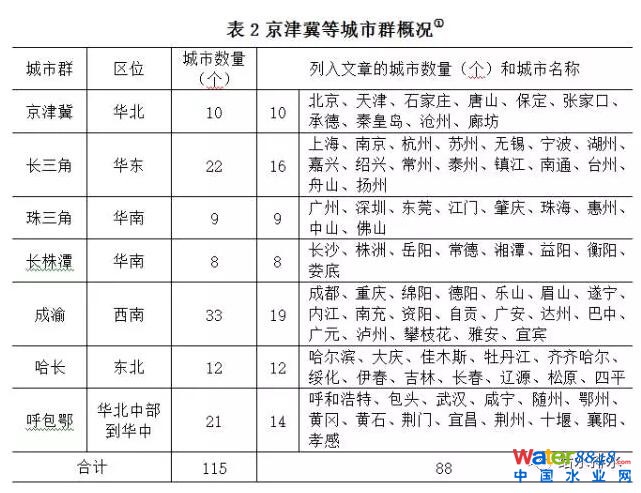 遴選了京津冀、長三角、珠三角、長株潭、成渝、呼包鄂、哈長等7個(gè)城市群(見表2) 數(shù)據(jù):七大城市群節(jié)約用水、污水處理和再生水利用情況