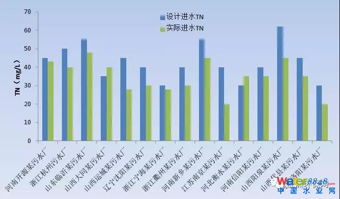 我們做了一些實(shí)際污水廠的進(jìn)水設(shè)計(jì)值與實(shí)際值的比較,可以看出從南到北很多污水處理廠的COD設(shè)計(jì)值與實(shí)際值有較大的差距,實(shí)際進(jìn)水COD遠(yuǎn)遠(yuǎn)低于設(shè)計(jì)值,只有50%左右,氮的值也會低一些,但低的并不是很多。所以,很多污水處理廠的池容是有冗余的,這種冗余的潛力在升級改造時就可能得到利用,當(dāng)然這會涉及到其他單元的問題,比如沉淀池的問題、進(jìn)水管線的問題等等,需要進(jìn)行實(shí)際評估。