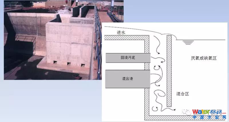 水力的優(yōu)化實(shí)際上涉及的面比較多,這里僅從DO對厭氧、缺氧的影響、進(jìn)水與回流污泥、混合液回流的混合、反應(yīng)池部分區(qū)域的短流簡單舉兩個例子。比如,在厭氧池設(shè)計(jì)的時候,往往是進(jìn)水管、回流污泥口一起進(jìn)入?yún)捬鯀^(qū),實(shí)際上比較好的做法設(shè)置一個混合區(qū),讓污泥與水進(jìn)行充分的混合。另外,進(jìn)水是要從底部、上部同時進(jìn),這樣的話降低了進(jìn)水帶入的DO。