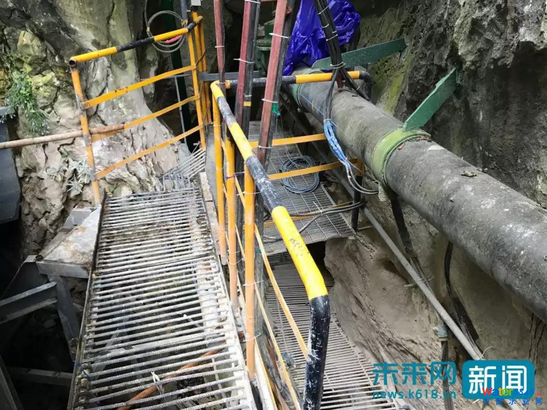 發(fā)財(cái)洞受污地下水題處理裝置抽水段,正在將污水從地下溶洞中抽出