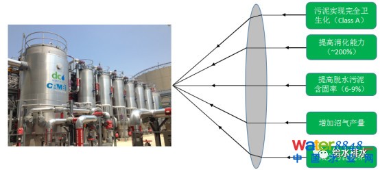 通過熱水解之后污泥消化的效能得到顯著提高,厭氧消化的時間大為縮短,進入消化池的污泥濃度大幅度提高,消化池的池容可以減半,同時提高脫水污泥含固率,增加一定比例的沼氣產(chǎn)量,減少污泥臭味,這項技術(shù)將多項功能密集化集中在一個單元上。
