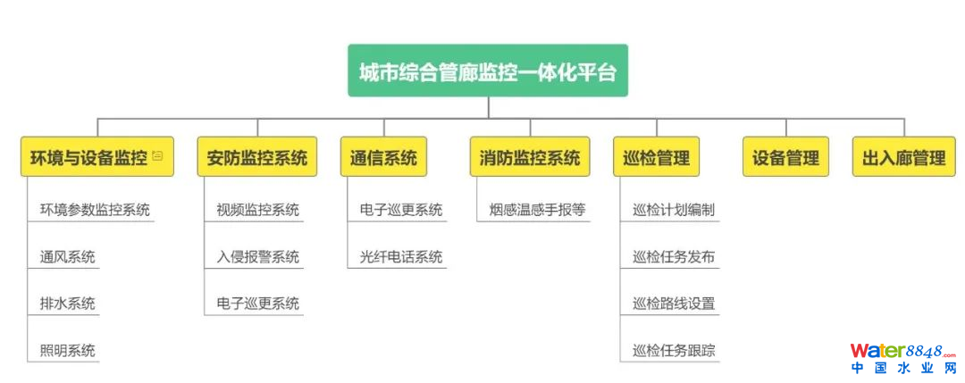 集成度高:集成環(huán)控系統(tǒng)、安防系統(tǒng)、消防系統(tǒng)、通信子系統(tǒng),幾乎涵蓋管廊中所有子系統(tǒng),一平臺管控所有設(shè)備;