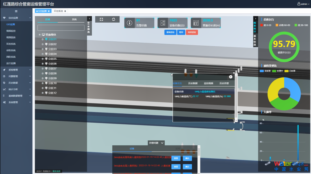 華自科技研發(fā)的HZInfo3000_UT綜合管廊監(jiān)控管理平臺完美破解綜合管廊管理的壓力與難題,該平臺充分利用云計算、物聯(lián)網(wǎng)、GIS+BIM、大數(shù)據(jù)等高新技術(shù),集環(huán)境設(shè)備監(jiān)控、安防監(jiān)控系統(tǒng)、通信系統(tǒng)、消防監(jiān)控系統(tǒng)、巡檢管理、設(shè)備管理、出入廊管理系統(tǒng)為一體,實現(xiàn)對管廊的集中管理和統(tǒng)一控制,保障管廊安全、高效、規(guī)范運行。