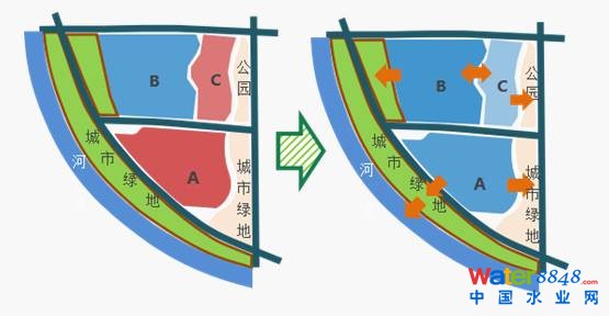 可以看到圖中A、B、C三個地塊,A地塊解決不了,可與周邊的城市綠地和公園綠地進(jìn)行聯(lián)動,B地塊解決不了可以與C地塊聯(lián)動,最后匯入城市綠地系統(tǒng)。最后,這個三角型區(qū)域能夠完成上位提出的年徑流總量的控制,徑流控制的設(shè)計任務(wù)就完成了。