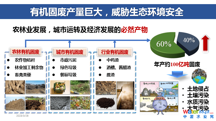 核心提示:郭婉茜:有機固廢資源化路徑求索與實踐 2023-08-09 11:58 發(fā)布于:安徽省 哈爾濱工業(yè)大學教授、國家高層次人才計劃入選者郭婉茜以“有機固廢資源化的路徑求索與實踐”為主題進行了發(fā)言。郭老師列舉了中藥渣的堆肥化、農(nóng)林廢棄物的能源化和城市剩余污泥的高值化三個案例深入探討了有機固廢的資源化路徑。 本文根據(jù)其發(fā)言整理 01 有機固廢資源化的重大意義 近年來,隨著國家對固廢處理處置的日漸重視,使得有機固廢資源化路徑和處理探索變得尤為重要。有機固廢分為幾大類:第一是農(nóng)林類的;第