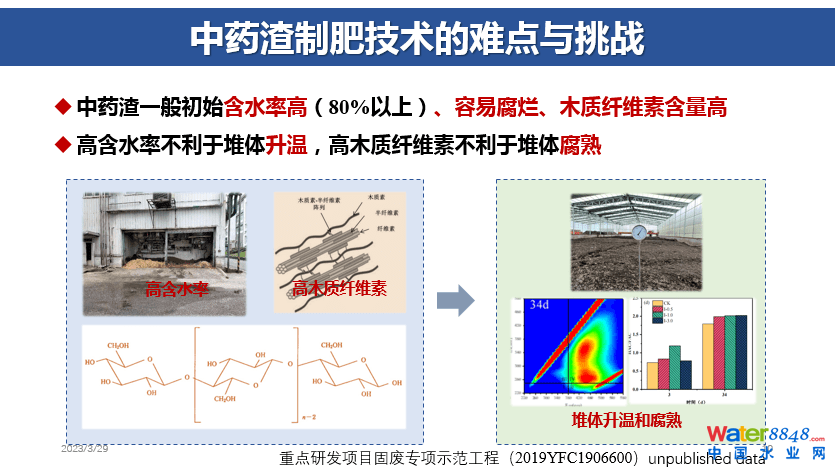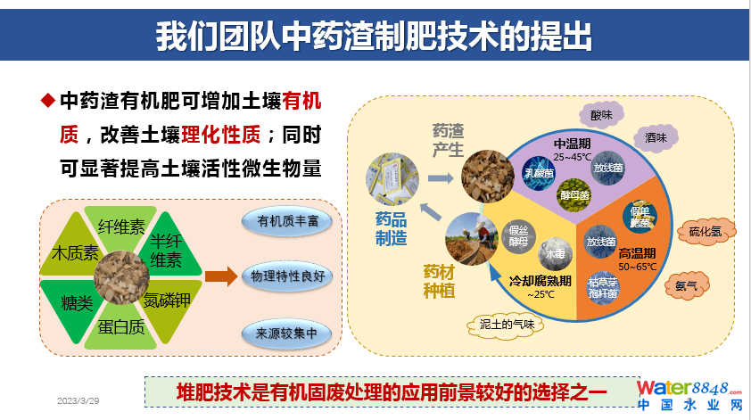 團隊幾年間,一直從事中藥渣好氧堆肥技術(shù)的研究,這種好氧堆肥的技術(shù)利用了植物藥渣中的木質(zhì)素、纖維素、半纖維素,包括糖、蛋白質(zhì)和一些氮磷鉀等營養(yǎng)元素,進行了綜合利用。在綜合利用過程中,把中藥渣的優(yōu)勢充分的發(fā)揮出來,中藥渣的特點就是無毒,原材料采購過程中,對品質(zhì)的把控非常嚴格,所以不屬于危廢,這里面我們做成的有機肥還可以增加土壤中的有機質(zhì),包括改善土壤的理化性質(zhì),顯著提高活性微生物的量,這種中藥渣的堆肥技術(shù)其實為藥渣處理和資源化提供了一個有效的途徑。