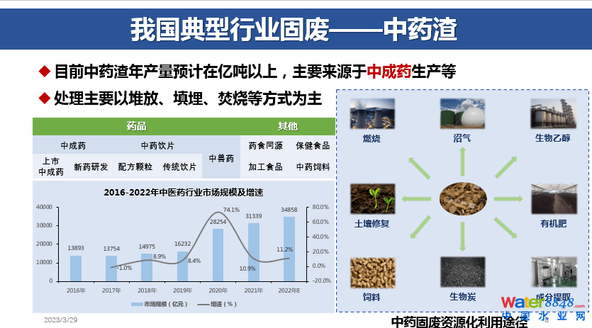 接下來,將舉幾個具體的案例介紹一下有機固廢應(yīng)用的資源化路徑。第一個是我們國家比較有特色的有機固廢,中藥渣;第二個就是農(nóng)林廢棄物;第三個就是我們比較關(guān)注的市政污泥。