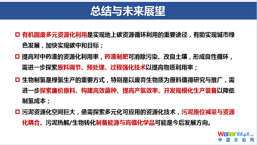 多元有機固廢的資源化利用,是實現(xiàn)廢棄物碳資源循環(huán)利用的重要途徑,也有助于實現(xiàn)城市綠色發(fā)展,加快實現(xiàn)行業(yè)碳中和的目標。在今天的報告中,也給大家舉了三個典型的案例,第一個就是中藥渣的堆肥化,第二個就是農(nóng)林廢棄物的能源化,第三個就是城市剩余污泥的高值化。