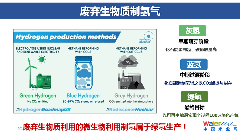 廢棄生物制氫歸結(jié)為以綠氫為主要生產(chǎn)過程的制氫。由于生物質(zhì)具有零碳屬性,所以綠氫生產(chǎn)最后可以形成一個100%的零碳閉環(huán),與之相比早期萌芽的灰氫則是以化石能源為主。包括后續(xù)藍氫產(chǎn)制的過程,在未來雙碳目標下的競爭下就會逐漸減弱,即便如此,我們在綠氫生產(chǎn)中也有一些瓶頸需要解決。