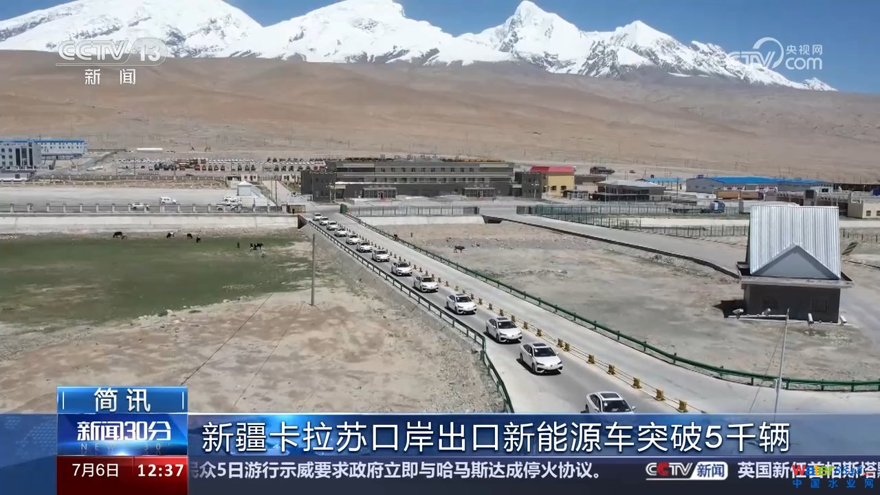 7月5日,80輛新能源汽車在邊檢和海關(guān)辦理完查驗手續(xù)后,由新疆卡拉蘇口岸出境發(fā)往塔吉克斯坦。今年截至目前,該口岸出口新能源商品車已突破5000輛。