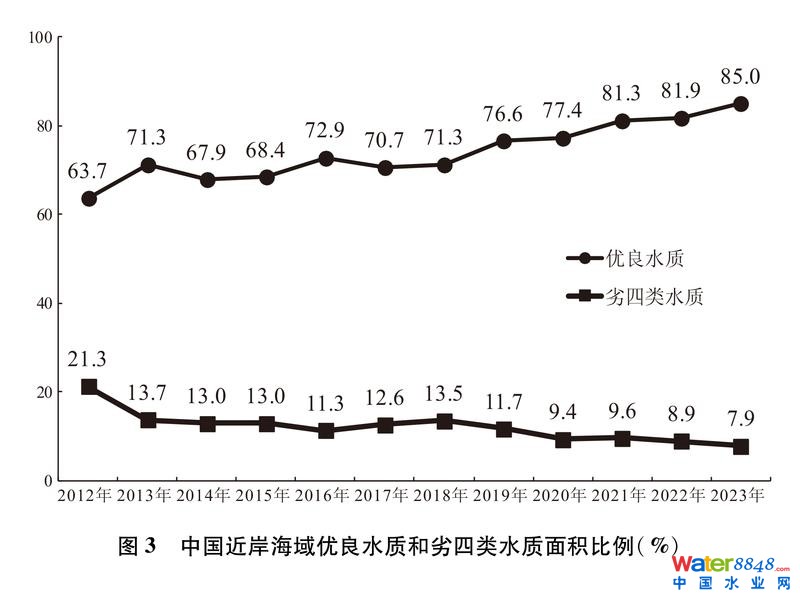 通過深入推進重點海域綜合治理、陸海污染協(xié)同防治,持續(xù)建設美麗海灣,中國近岸海域水質(zhì)總體改善,2023年優(yōu)良水質(zhì)面積比例較2012年高出21.3個百分點。