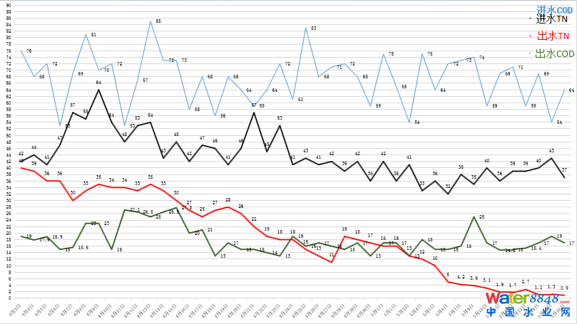 1、污水處理廠實際進水水質(zhì)遠低于原設(shè)計進水水質(zhì),目前正在排查原因。